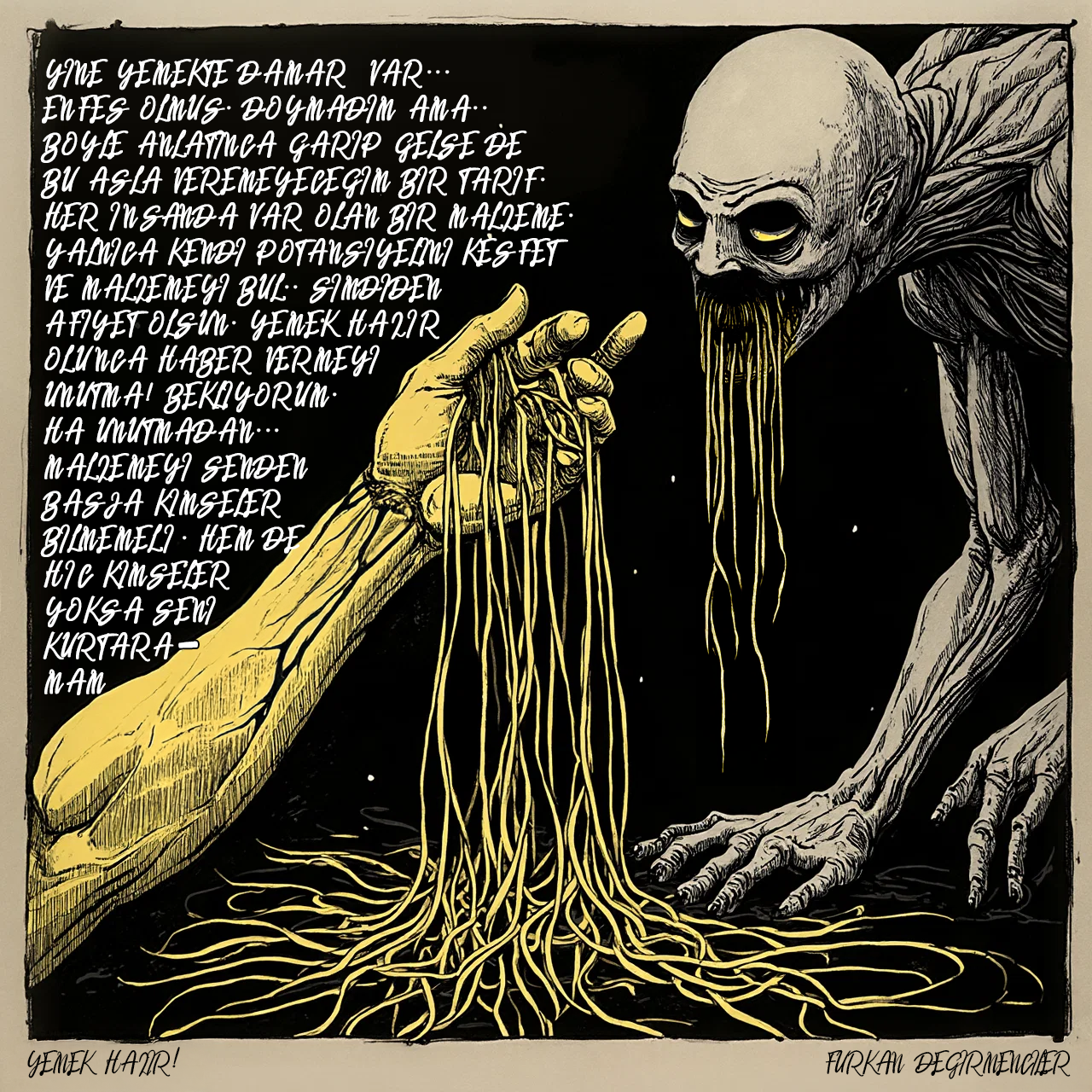 İnsanların, damarlarını yedirmeyi sevdiğini düşünmeye başladım. Yiyenin keyfi zaten yerinde. Ses çıkarmadan, YEMEK HAZIR! hadi gel dostum, yıllardır biriktirdiğim kanımı iç dercesine kendilerini, başka kimliklere sunuyorlar ve bundan zevk alıyorlar.